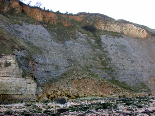 Au-dessus de la falaise calcaire, le talus argileux constitué