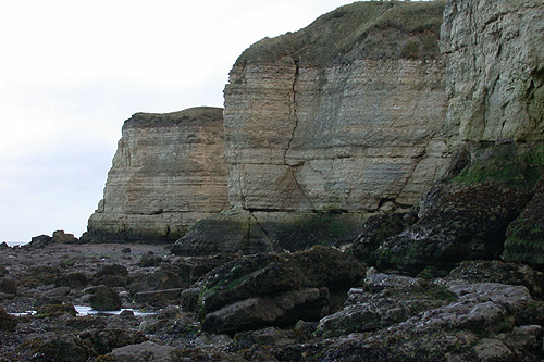 Devant la falaise, s’étend la plate-forme d’abrasion