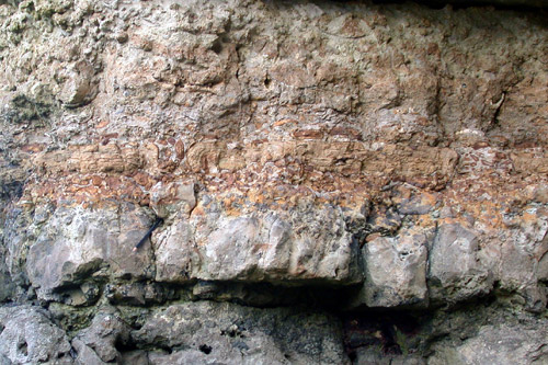 Au-dessus du Conglomérat de Bayeux reposent les calcaires grisâtres