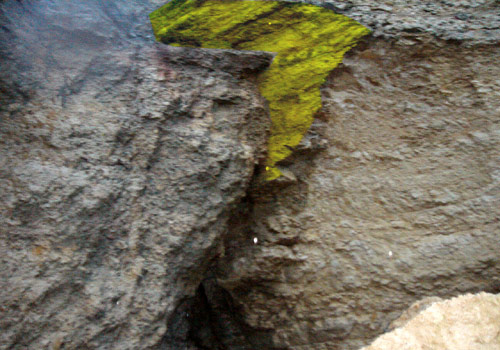 le plan de faille vertical est parcouru par des stries horizontales. |