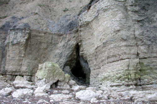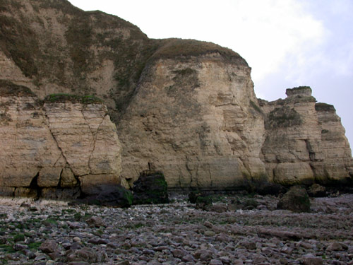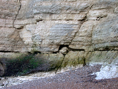 falaise vive, taillée dans le Calcaire à spongiaires,