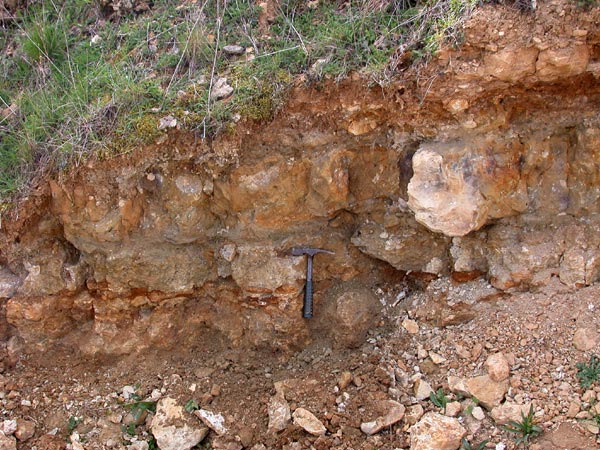 Au-dessus de cette surface, le pavage d'oncolithes ferrugineux