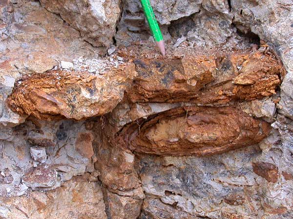 du banc sous-jacent, des fragments de calcaire sont détachées