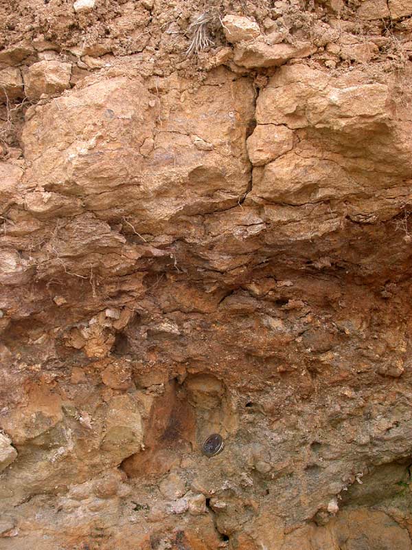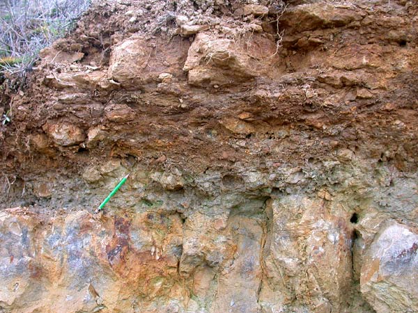 Le niveau argileux brun est surmonté par des calcaires micritiques