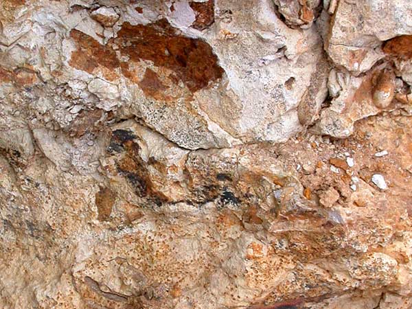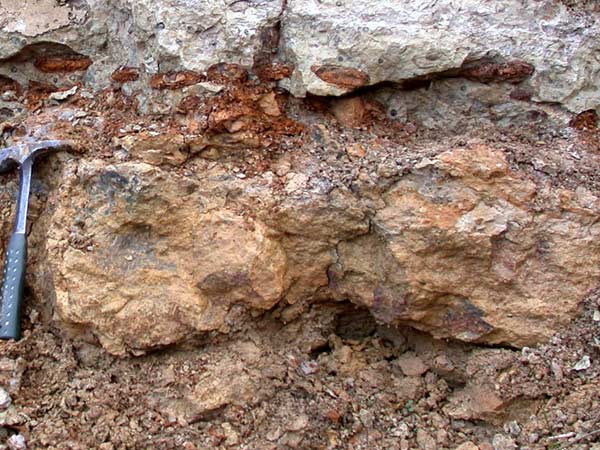 des oolithes ferrugineuses. Au-dessus de la surface, la matrice carbonatée