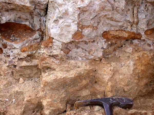 et surmontée par le pavage d'oncolithes ferrugineux de la base
