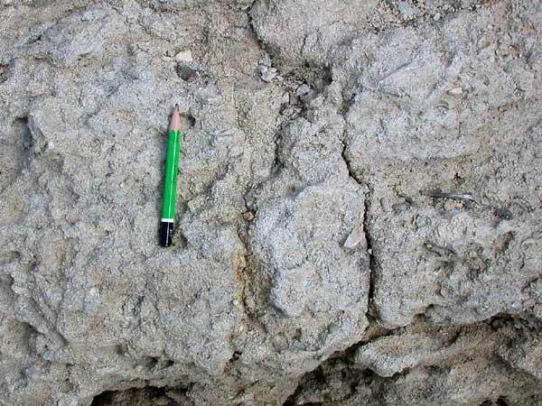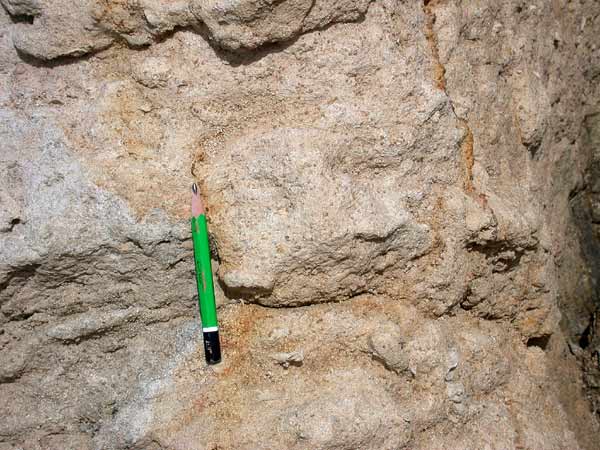 Banc de calcaire oolithique grisâtre, mal stratifié,
