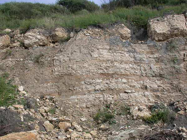 Des bancs de calcaire oolithique blanchâtre mal stratifiés