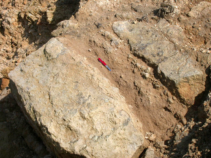 Les encroûtements sont fréquents au sommet de la Formation du Calcaire oolithique de Trouville. |
