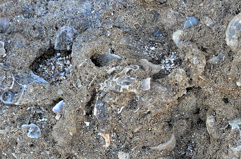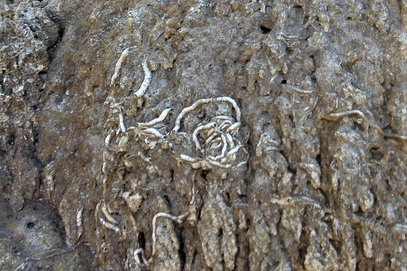 Encroûtement de petites huîtres de type Nanogyra. |