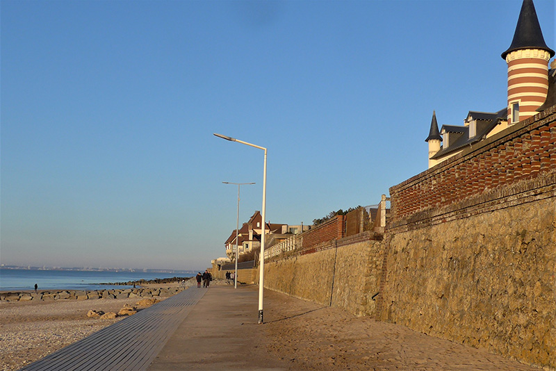 La digue-promenade de Blonville-sur-Mer et le mur de soutènement construit avec les calcaires oxfordiens du Mont Canisy