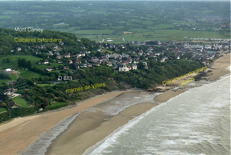Sur la plage de Bénerville, entre la pointe et les aménagements de Blonville, les rochers plus ou moins dispersés sont des gerbes de polypiers et des calcaires provenant des formations oxfordiennes du sommet du Mont Canisy (Calcaire oolithique de Trouville et formation récifale du Coral Rag). Ils ont été entraînés par des glissements anciens mobilisés lors de la dernière période froide quaternaire, sous climat périglaciaire.