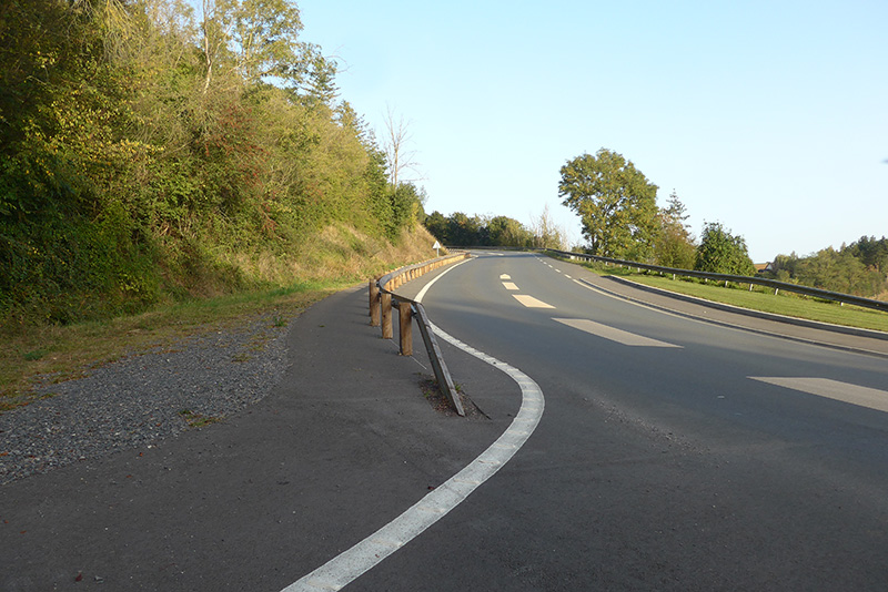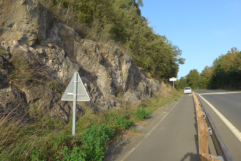 L’accès aux affleurements a été sécurisé grâce au passage de la route à trois voies à une route à deux voies. Le long du talus, la circulation des piétons est protégée par une barrière de sécurité. Un trottoir a été aménagé de l’autre côté de la route.