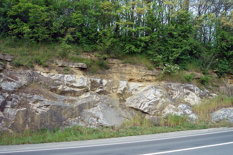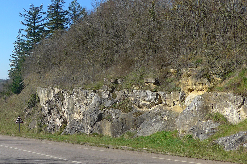 Au-dessus de la surface d’érosion post-varisque, la base du Pliensbachien (Lias) renferme des galets épars enrobés dans une abondante matrice argilo-silteuse. Ces matériaux détritiques sont issus de l’érosion de la chaîne varisque.