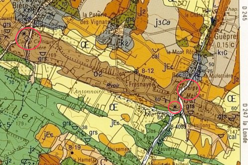 Extrait de la carte géologique à 1/50000, feuille Falaise (BRGM Orléans)