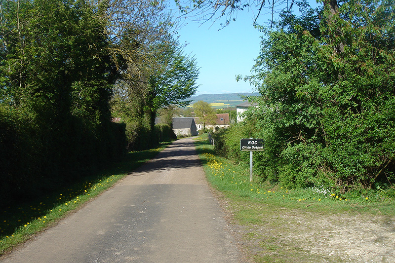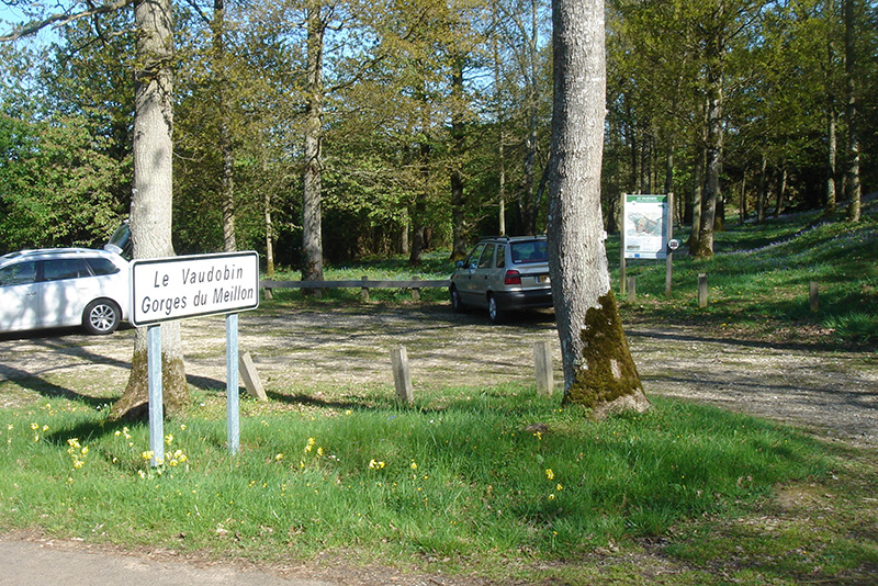 L’entrée du parking se trouve sur la route de Guépréi à la Fresnaye, à la sortie sud du hameau du Roc. |