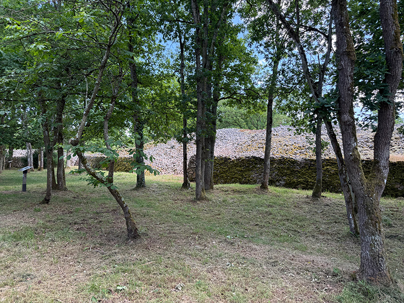 Le barrage de pierres protégeait l’accès au site par le Sud. Il présente une largeur de 32m et une hauteur préservée de 7m. Les archéologues estiment sa hauteur initiale à 10m au moins. L’entrée est partiellement comblée à la suite de l’effondrement des murs du passage aménagé dans le barrage. |
