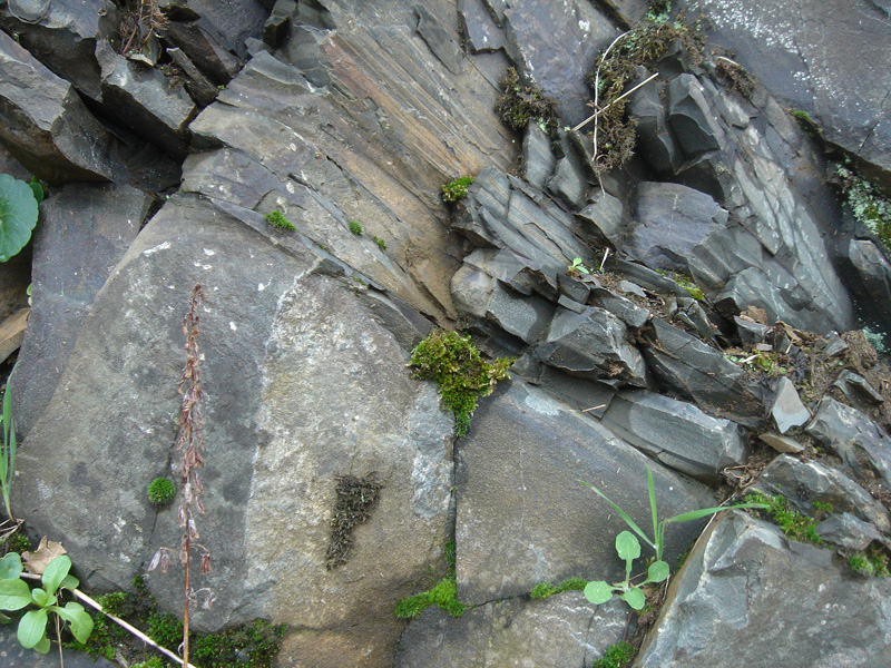 Une schistosité frustre affecte les siltites ; elle est oblique par rapport aux plans de stratification. |
