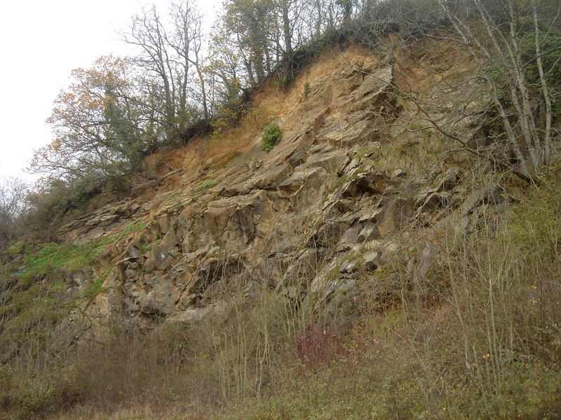 On peut suivre le Briovérien dans la vallée de la Laize jusqu’à la carrière de La Roche Blain où il est actuellement exploité. |