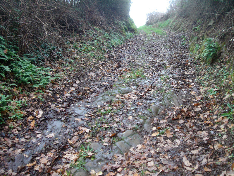 Les derniers affleurements de Cambrien dans le chemin creux avant le plateau