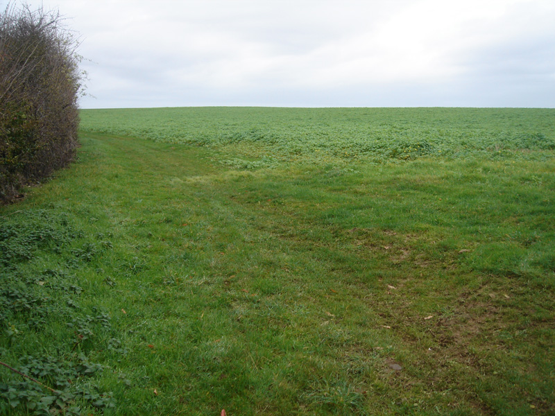 Masquée par le couvert végétal, la discordance du Jurassique sur le Cambrien peut être localisée entre la fin du chemin creux (Cambrien) et les champs cultivés du plateau (Jurassique). |