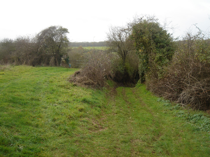 Le chemin creux débouche sur une grande étendue plate cultivée sur les calcaires jurassiques du plateau. |