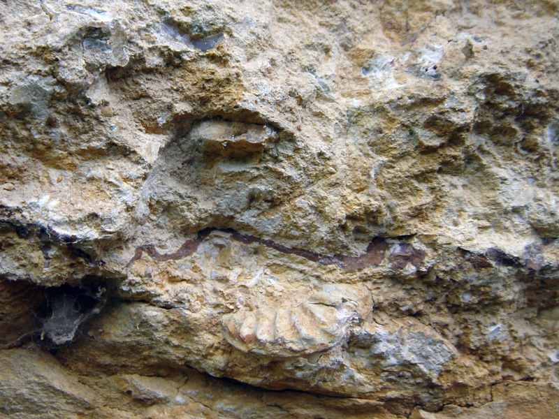 Les ammonites récoltées dans les calcaires de la base de la série jurassique ont permis de leur donner un âge pliensbachien (Lias ou Jurassique inférieur). Ces calcaires, localement mal cimentés, contiennent aussi des bélemnites, des grains et des enduits ferrugineux. |