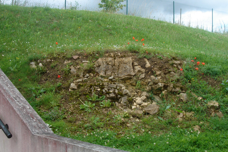 L’affleurement de Calcaires de Laize et la surface de discordance varisque sont visibles dans le talus situé à l’arrière du bâtiment, à droite de l’escalier qui mène au parking du sommet du coteau.