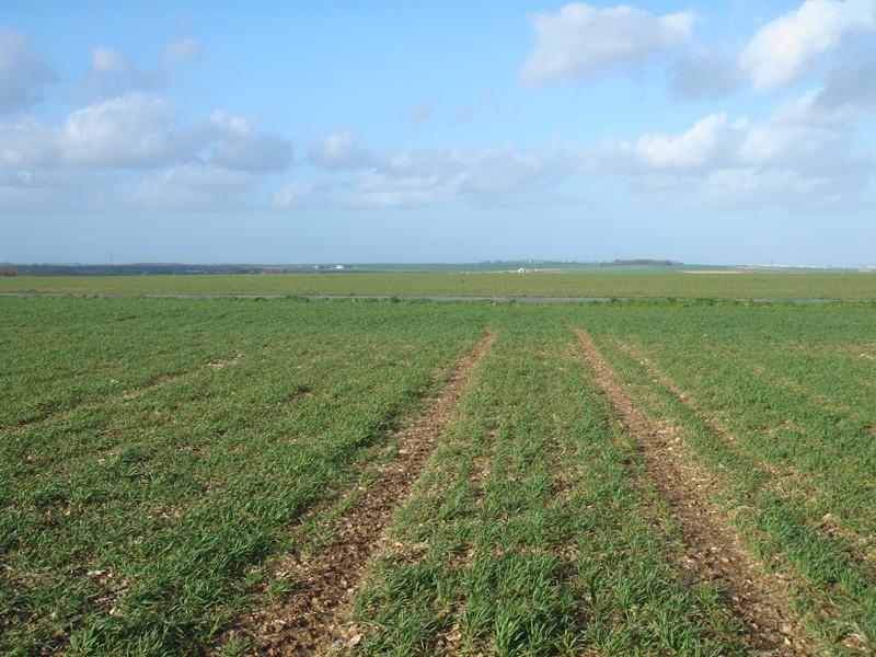 Sur le plateau à l’Ouest de Vieux, la route D 89 traverse un paysage de vastes champs ouverts installés sur les calcaires jurassiques du Bassin Parisien ; ces derniers recouvrent entièrement le socle armoricain, sauf dans le fond de la vallée de la Guigne.