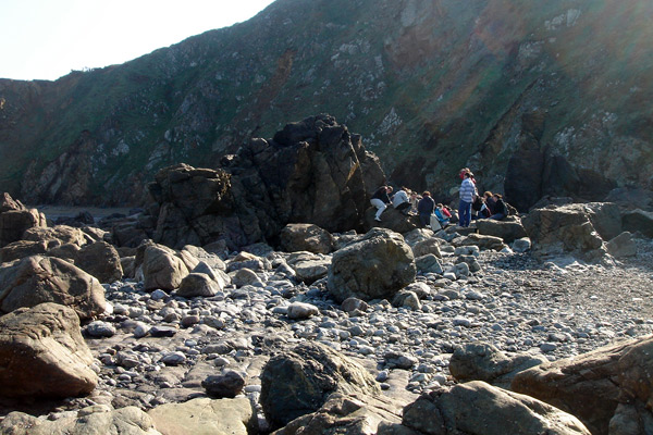 Partiellement visibles à marée montante, ils présentent les meilleures conditions d’affleurement ; certains rochers exposent un faciès d'orthogneiss œillé caractéristique, d’autres exposent un début de migmatisation bien identifiable. De plus, c’est uniquement dans ce secteur qu’on trouve les enclaves (le groupe observe l’une d’elles).