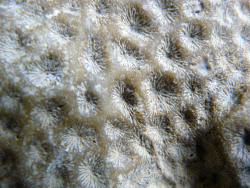 Formes étoilées plusieurs fois répétées à la surface du fossile de forme plate ou branchue :