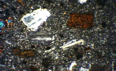 La pâte microlithique est essentiellement constituée de plagioclases. |