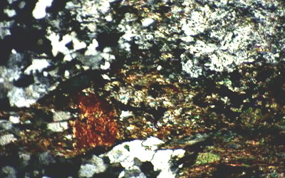 est aisément reconnaissable ici grâce à son pléochroisme,