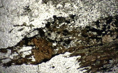 de sa couleur brune et de son clivage parfait. Les régions claires