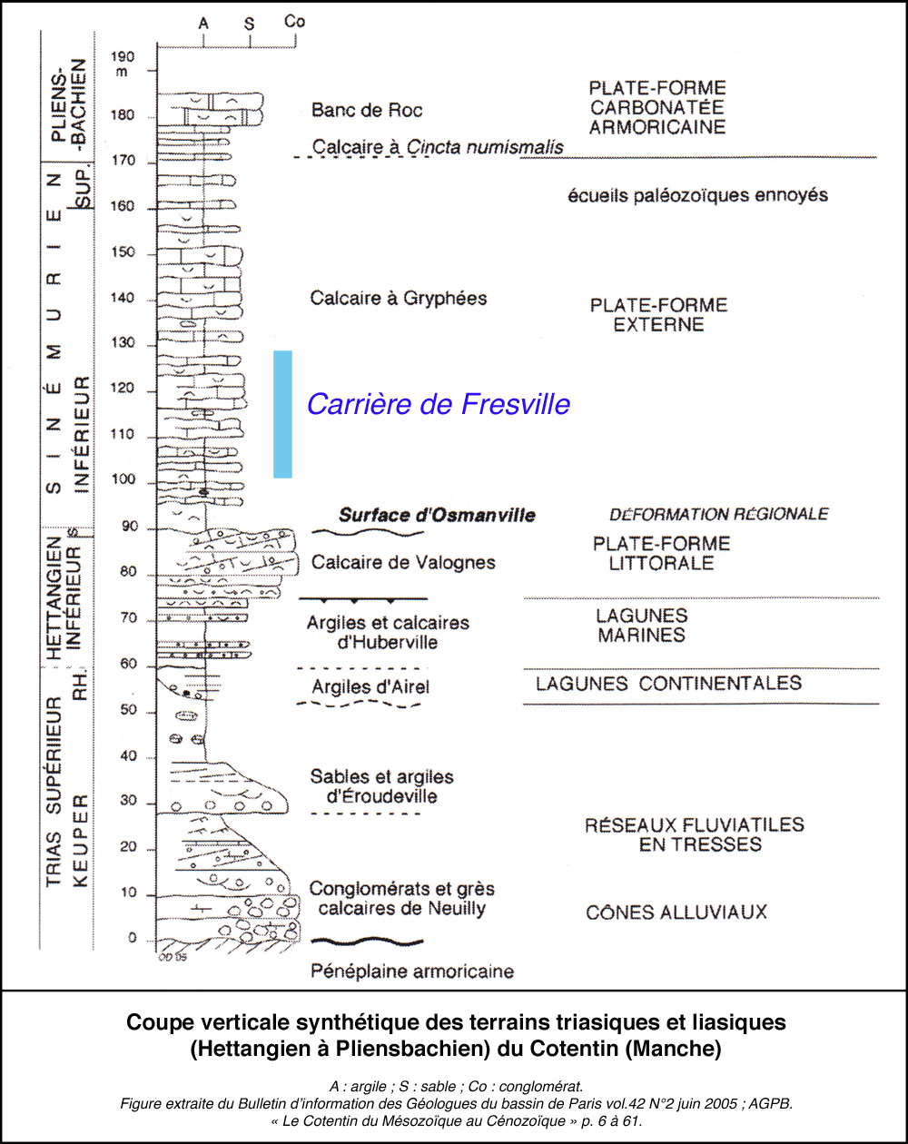 Reconstitution de l’histoire géologique du Cotentin et du secteur de Fresville Coupes chronostratigraphiques |