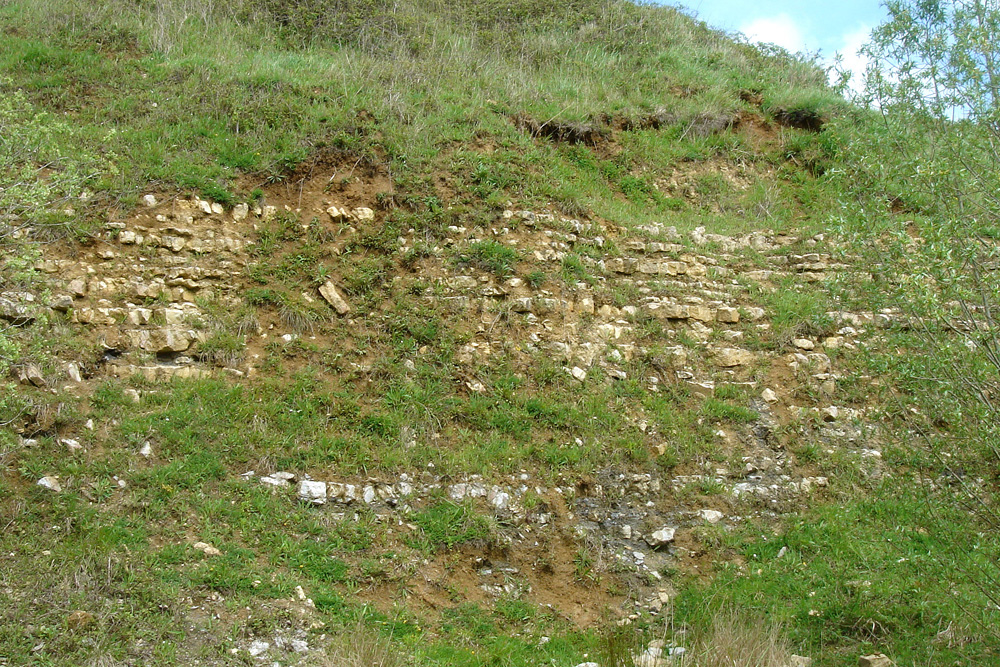La partie supérieure de la série, à bancs calcaires argileux jaunes, peut aussi être observée sous la petite butte du secteur Sud-Est