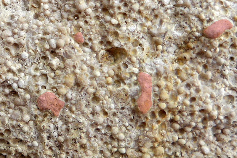 Ce calcaire oolithique renferme des oncoïdes, concrétions carbonatées, plus grosses que les oolithes, allongées ou en forme de petits galets. Les oncoïdes résultent du dépôt de lamines calcaires successives autour d’un nucleus, qui est le plus souvent un bioclaste ou autre débris. Ils sont liés à l’activité d’algues encroûtantes, de type Girvanella, dans des eaux chaudes agitées, peu profondes.