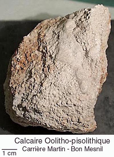 Echantillon de calcaire oolithique prélevé dans la partie inférieure du front de taille de la carrière de Bonménil