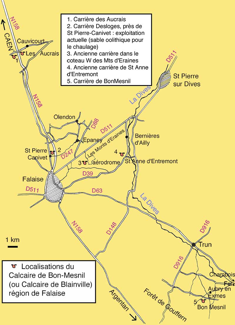 Formation du Calcaire de Bon-Mesnil - Bathonien moyen Localisation - Carte - Région de Falaise-Argentan