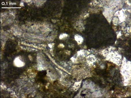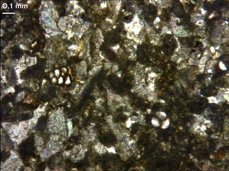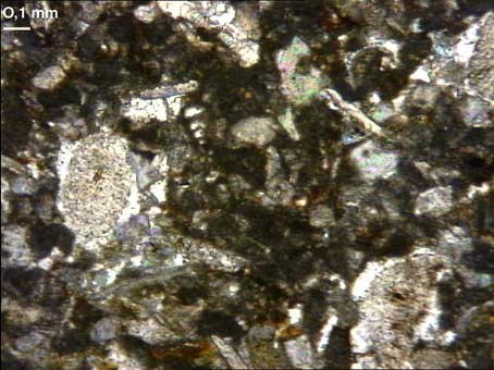 Fine mouture bioclastique constituée de nombreux débris d'entroques, accompagnée de nombreux pelletoïdes subarrondis, très assombris par de la micrite. Quelques foraminifères y apparaissent bien conservés.