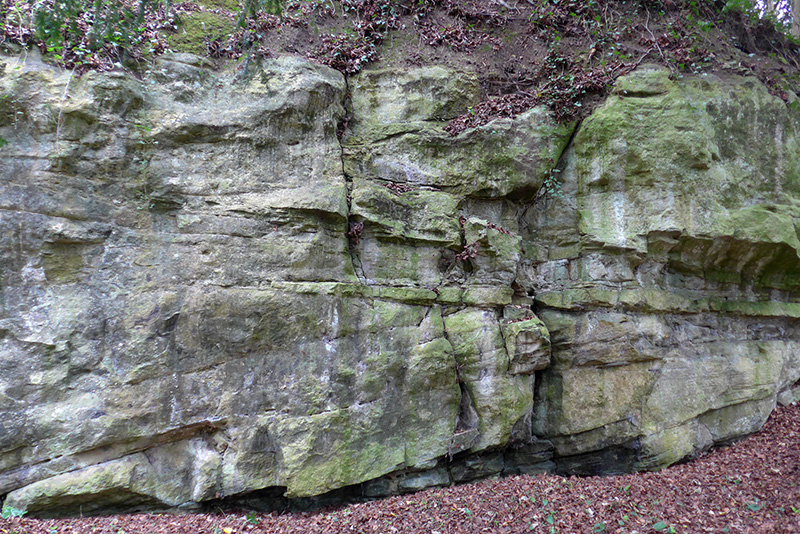 Les bancs de Calcaire de Creully présentent une stratification oblique caractéristique ; le calcaire été exploité pour la production de pierre à bâtir et l’alimentation des fours à chaux.