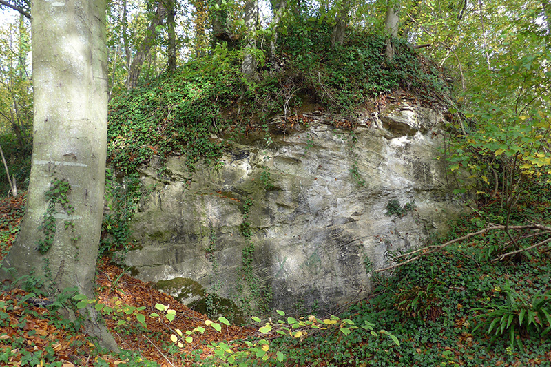 Cet ancien front de taille dégradé est situé en face du terrain de moto-cross de Basly et au débouché du GR 223 qui longe les carrières souterraines de Basly.