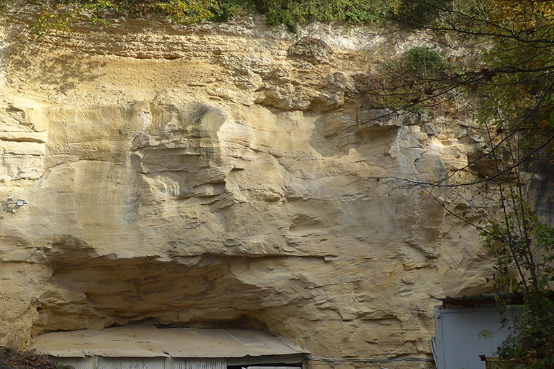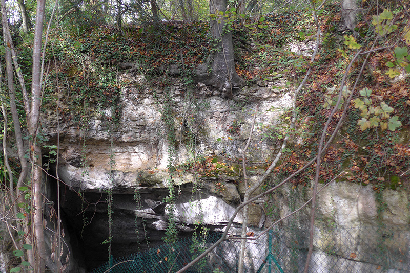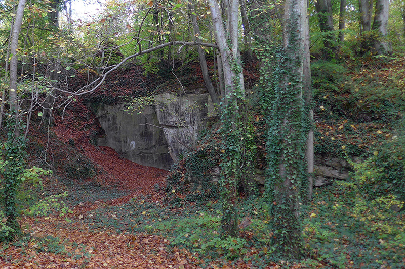 La base du coteau a été entaillée jusqu’à une dizaine de mètres de hauteur ; ensuite, l’extraction de la pierre s’est poursuivie en souterrain. A la fin de l’exploitation au siècle dernier, les cavités souterraines ont été utilisées comme champignonnières, maintenant abandonnées. |