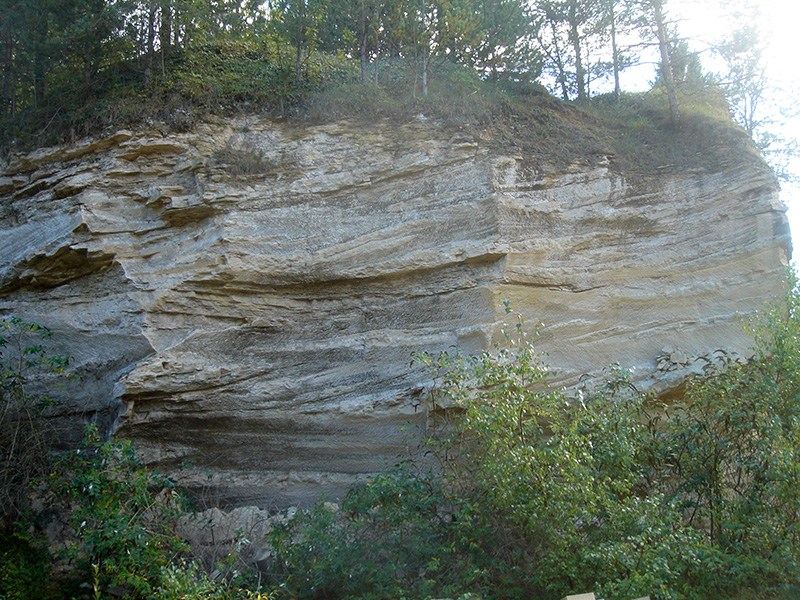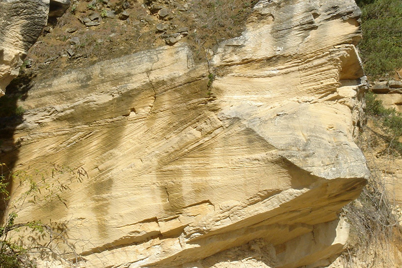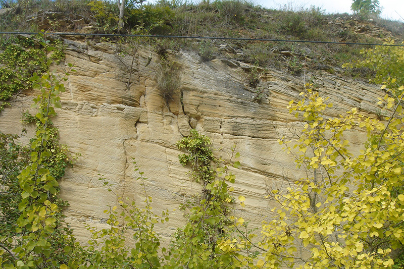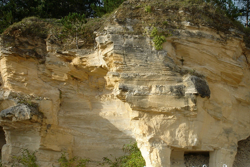 Dans une ancienne zone exploitée du secteur nord, facile d’accès, un ancien front de taille expose des structures sédimentaires assez bien conservées. |