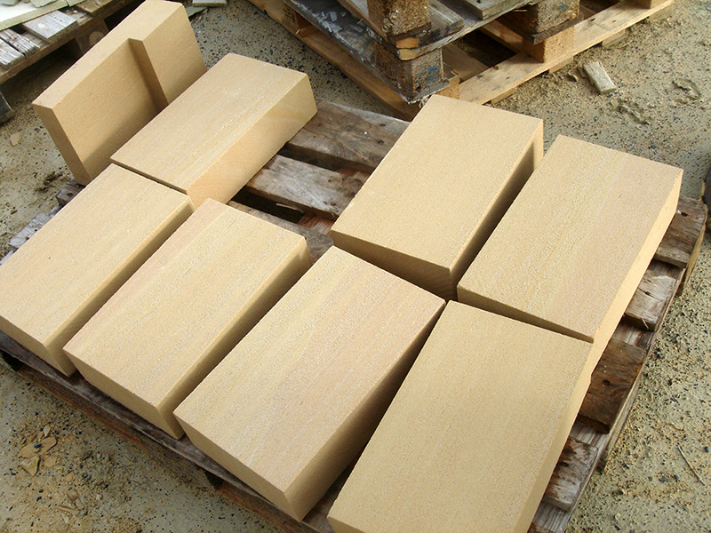 Blocs de pierre sciée en attente de livraison