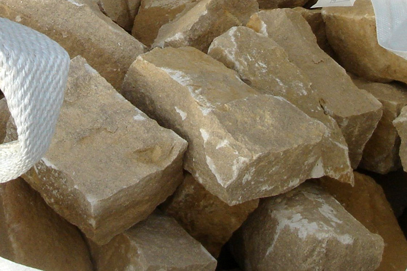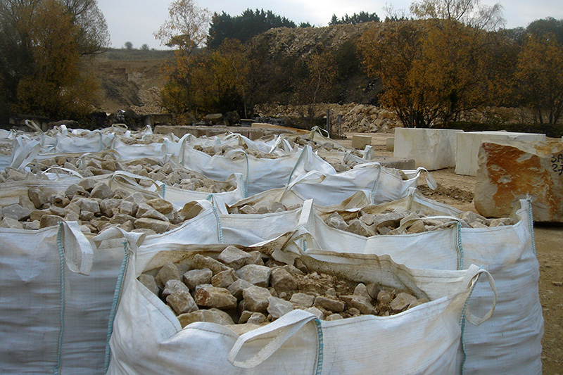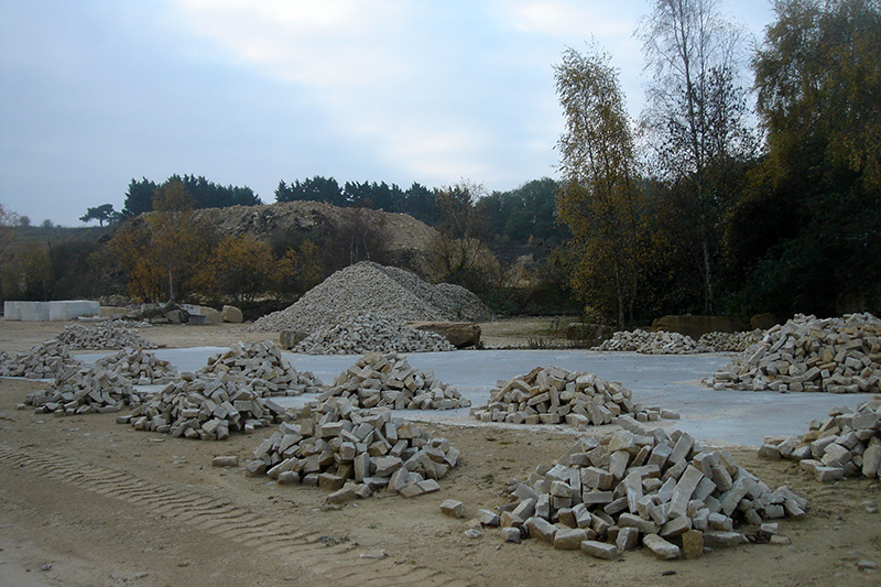 Aire de stockage de blocs débités en moellons grossiers. Le site dispose de deux éclateuses à mœllons hydrauliques. |