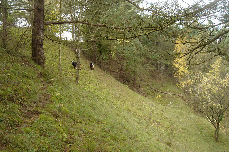 La réserve réunit plusieurs anciennes carrières et le terrain est escarpé. Le débroussaillage est assuré par des chèvres.