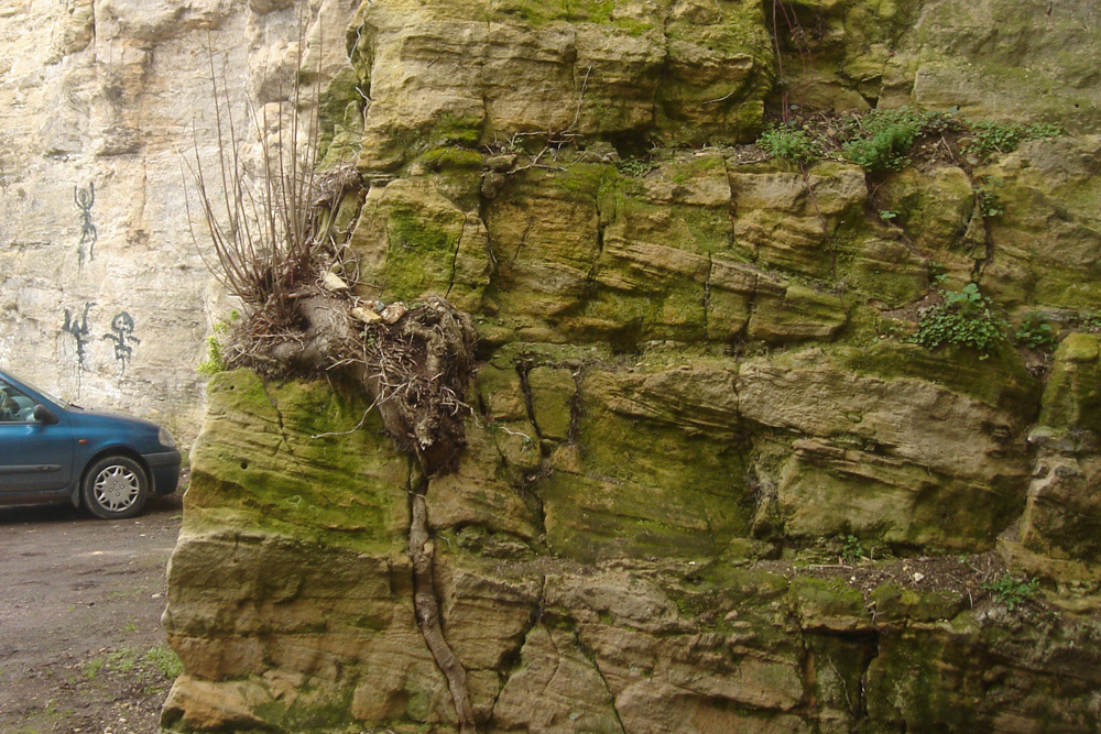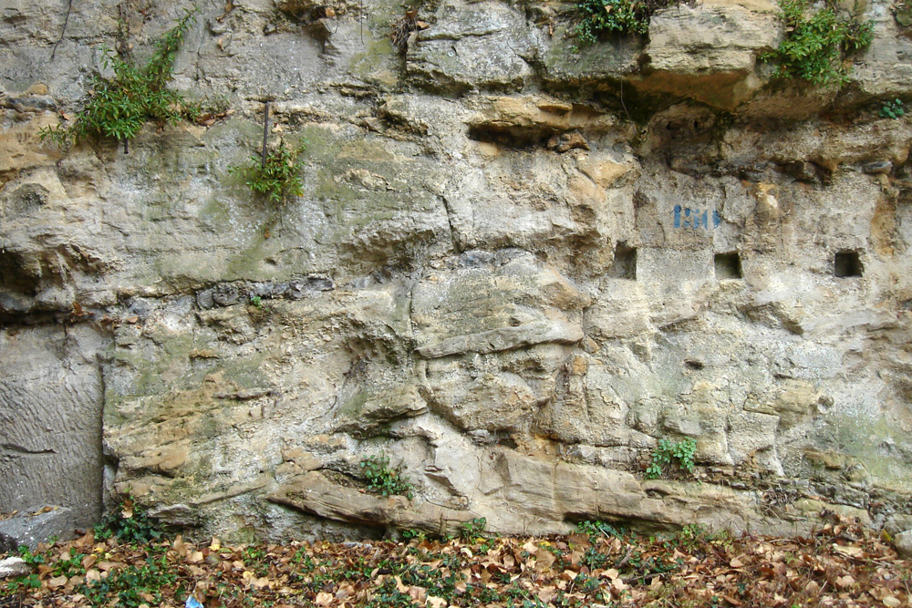 Affleurement de Calcaire de Creully au Calvaire Saint-Julien.