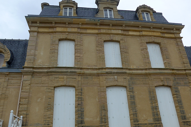 La pierre de Creully a été utilisée en tant que pierre de taille dans la construction de bâtiments d’habitation à Arromanches, sur le littoral du Bessin.
