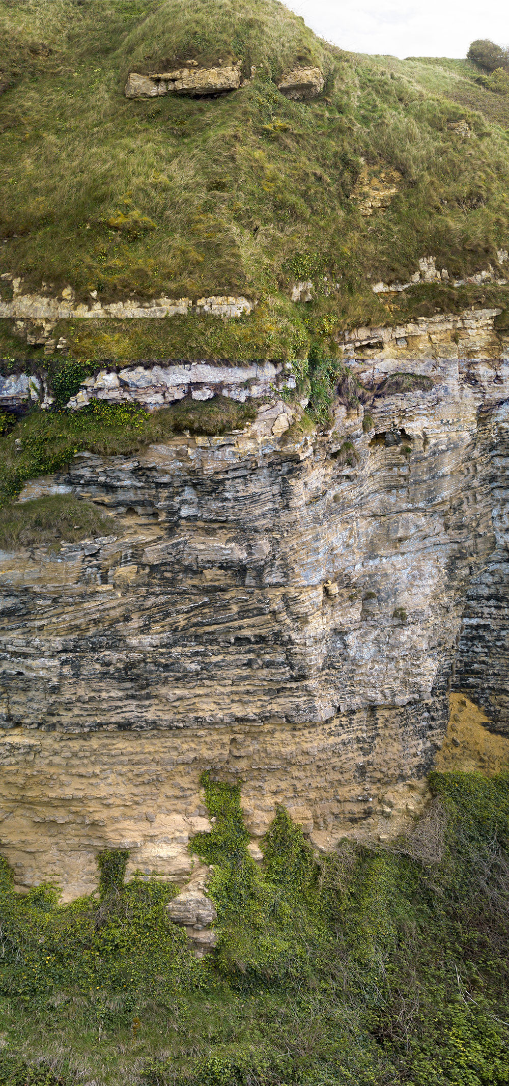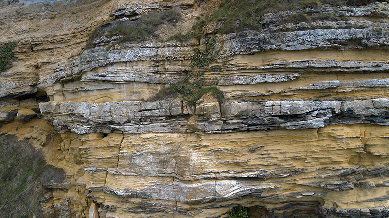 Calcaire de Creully dans la falaise de Longues